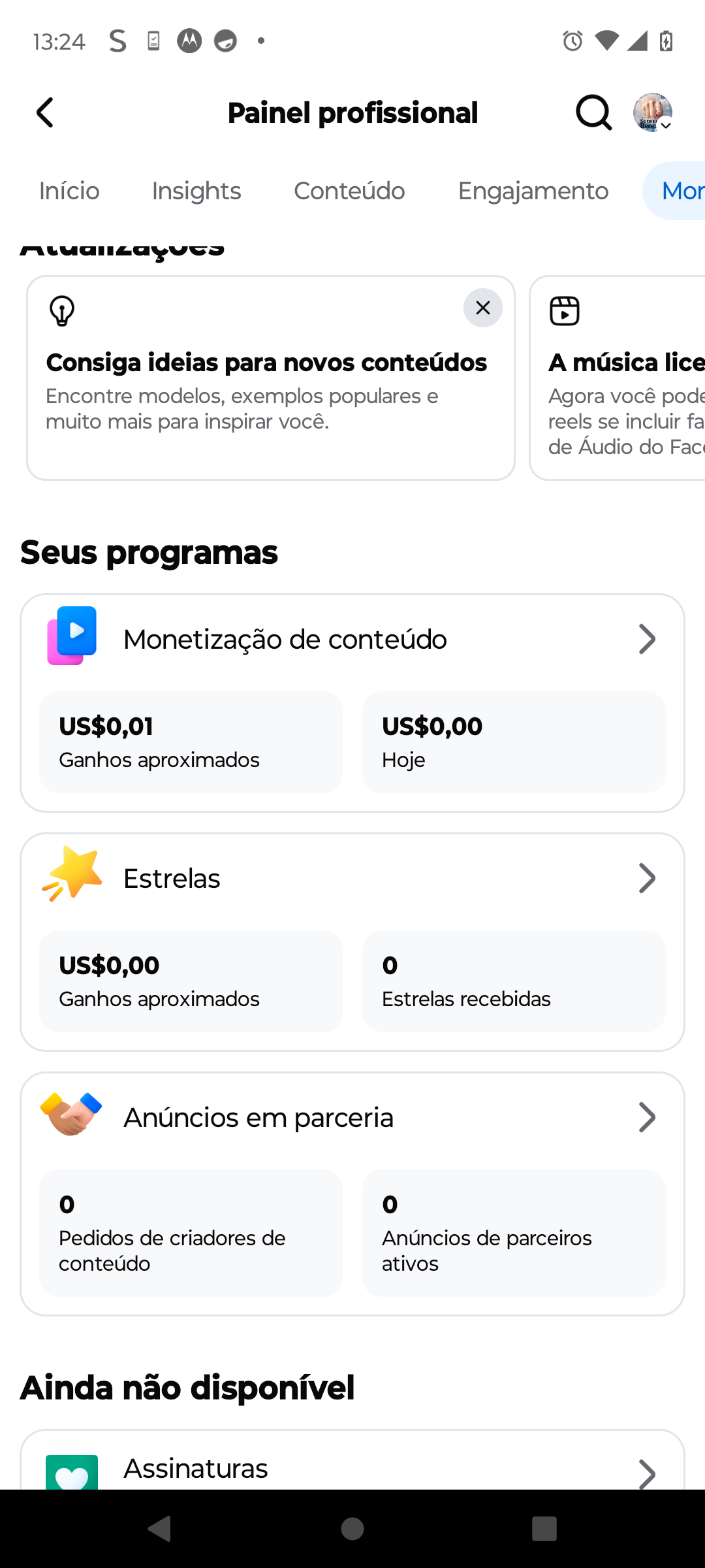 Está monetizada somente fotos e textos, vídeos e reels estão limitados
