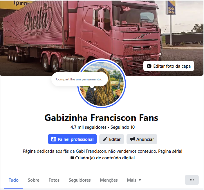 Página Gabizinha Franciscon Fans – 4,7k seguidores