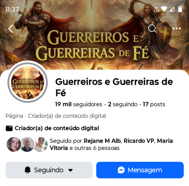 Página Facebook Guerreiros e Guerreiras de Fé com 19 mil seguidores