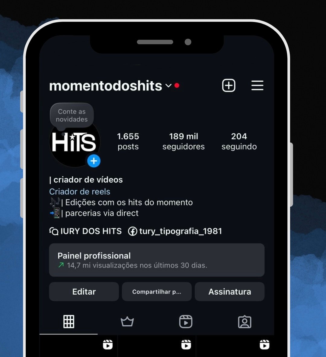 🌐 • Perfil com mais de 14 milhões de alcance mensal, apresentando engajamento sólido