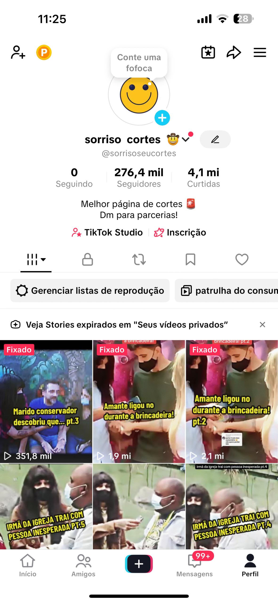 pagina no tiktok com quase 300k de seguidores e milhões de curtidas