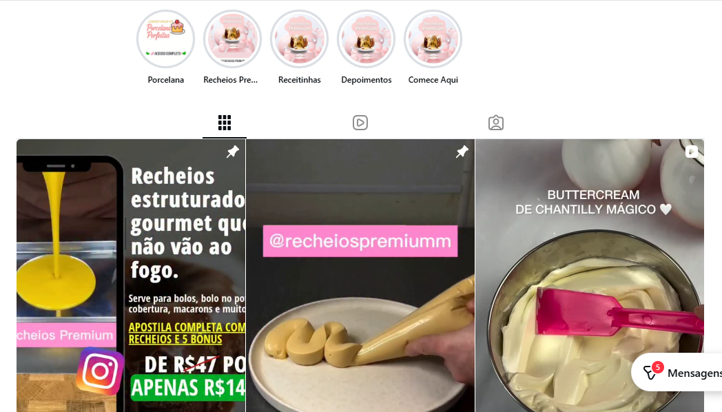 Pagina Instagram Tema Recheios confeitaria com 63 mil Seguidores