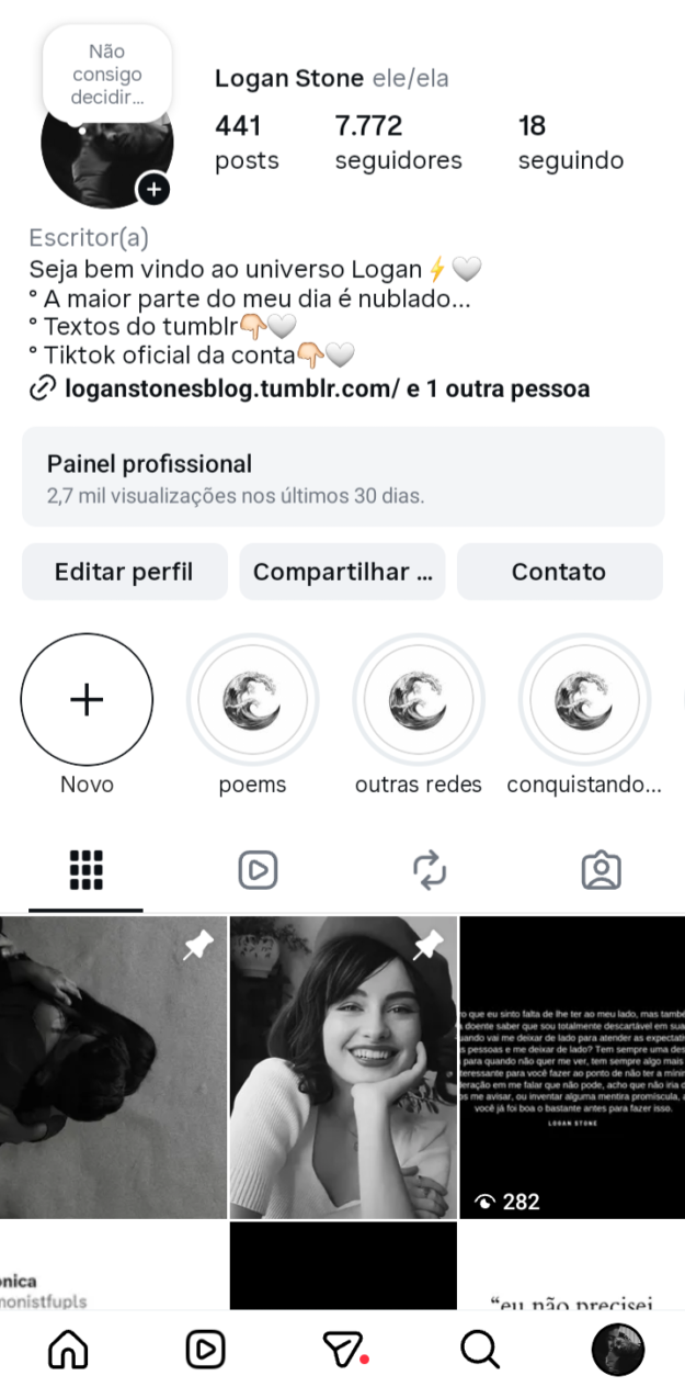 Perfil de Frases (7,7k subs) ✨ Conta de 2021 | 🛡️ 100% Limpa e sem restrições | ✍️ Nicho de Poemas e Reflexões. Histórico impecável e pronto para novo dono
