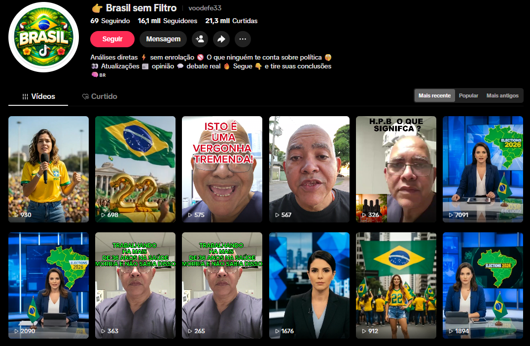 O perfil “Brasil sem Filtro” já está validado dentro de um dos nichos mais fortes da internet: política, opinião e atualidades. Com mais de 16 mil seguidores e mais de 21 mil curtidas, ele possui uma base engajada que consome conteúdo direto, polêmico e altamente compartilhável.