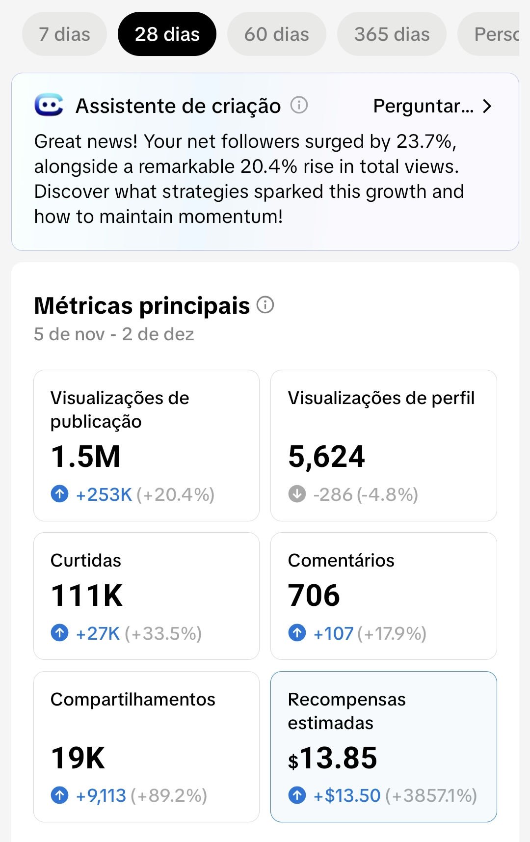 📈 875K views últimos 28 dias