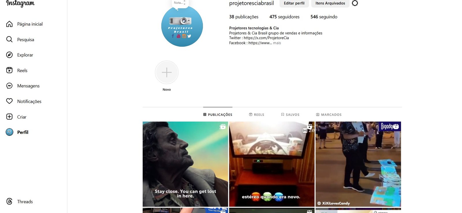 Projetores tecnologias & Cia ® 3 grupos de tecnologias e projetores sendo Twitter, Facebook e Instagram