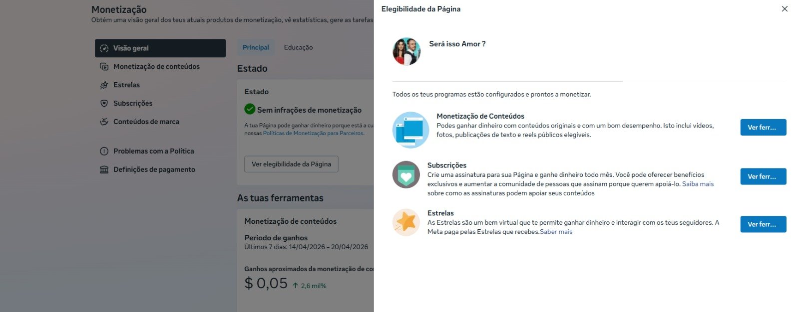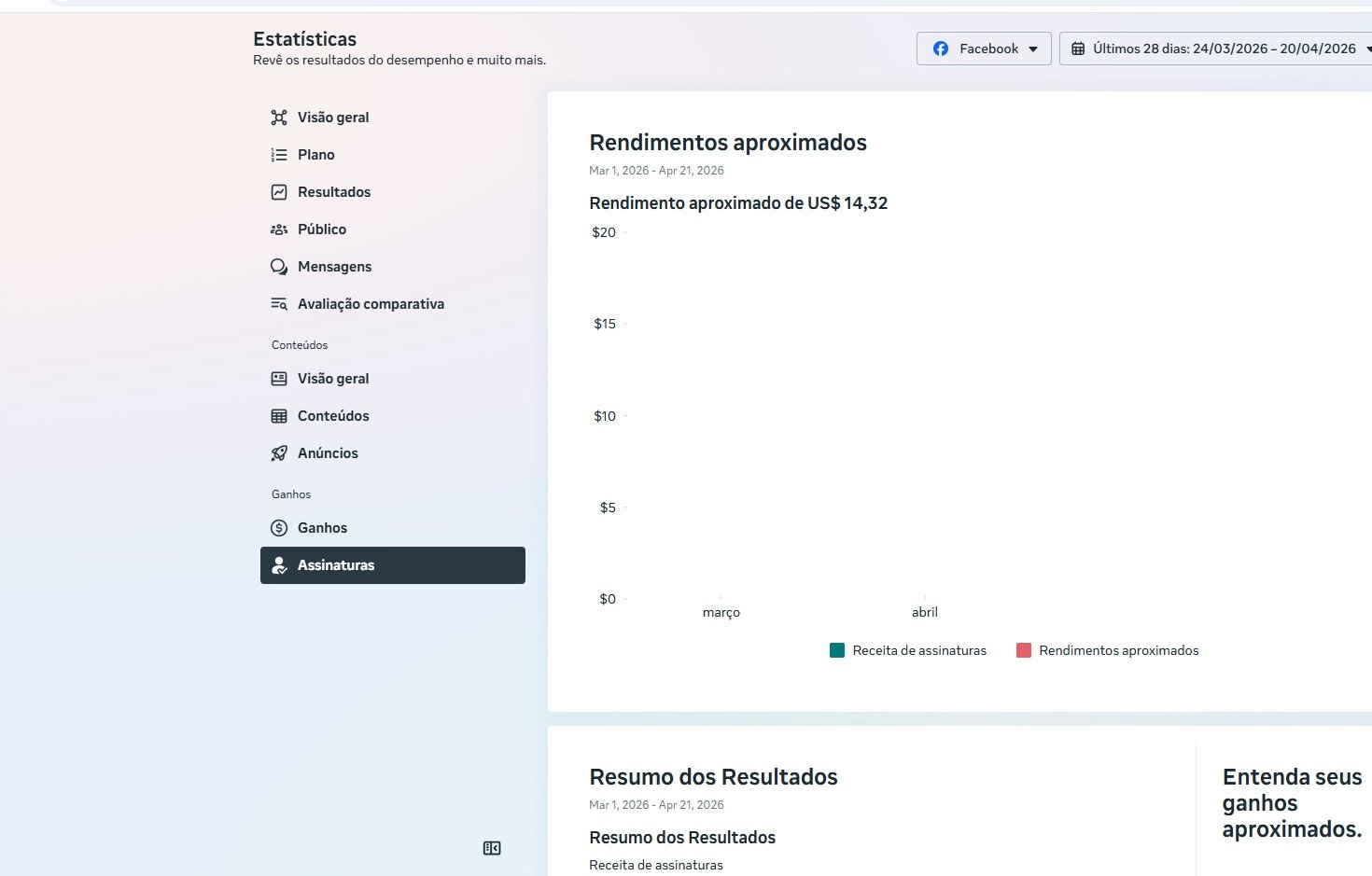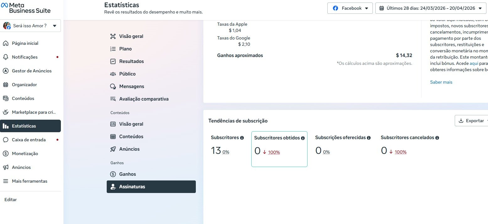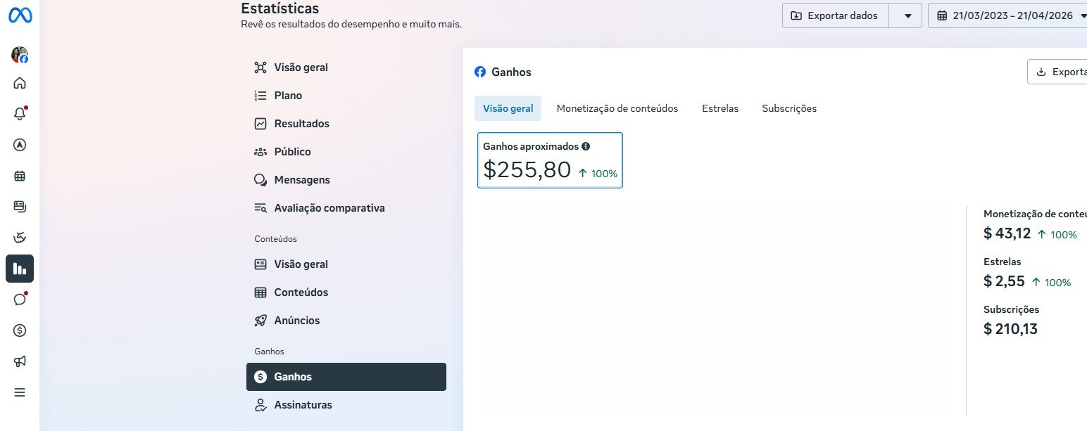 - Detalhes do Rendimento: inscrições, porém está com a monetização de conteúdo ativa
