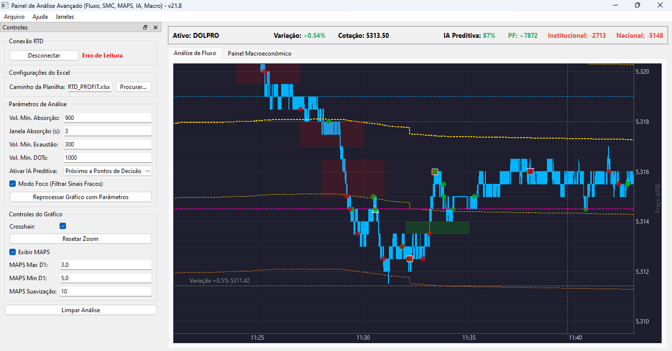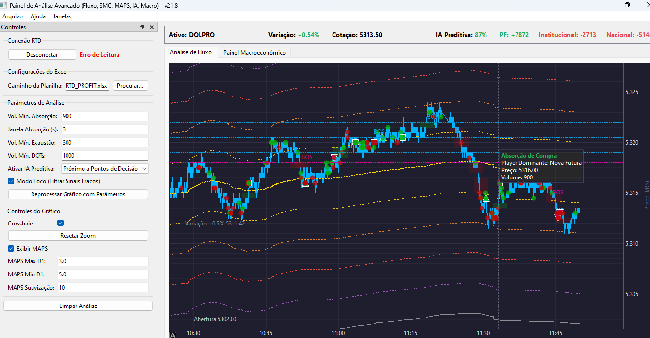 ✅ Integração Simples: Conecte diretamente à sua planilha RTD do Profit Chart em minutos.
