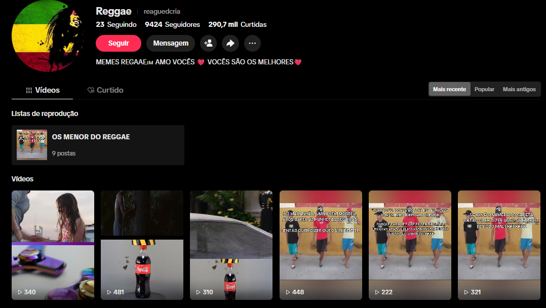 CONTA TIKTOK | 9,4K+ SEG | 290,7K CURT | NICHO REGGAE & CULTURA URBANA 🎵 | PRESTES A MONETIZAR | POTENCIAL VIRAL 🚀