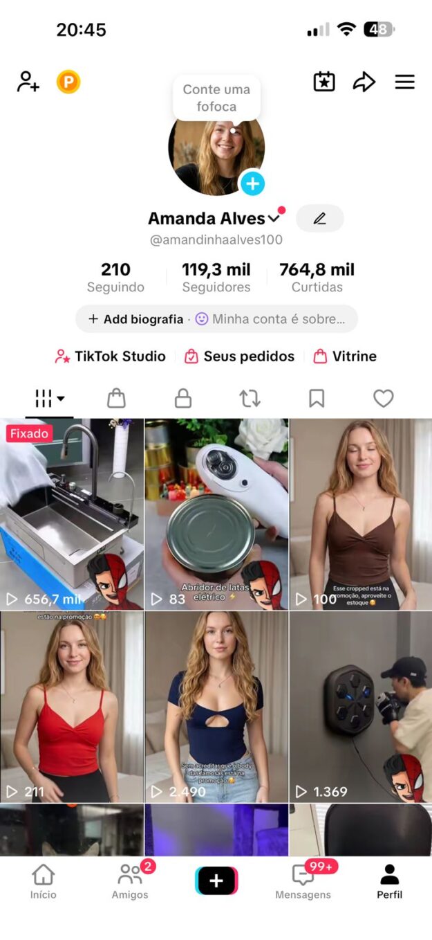 - Link da Conta: https://www.tiktok.com/@amandinhaalves100