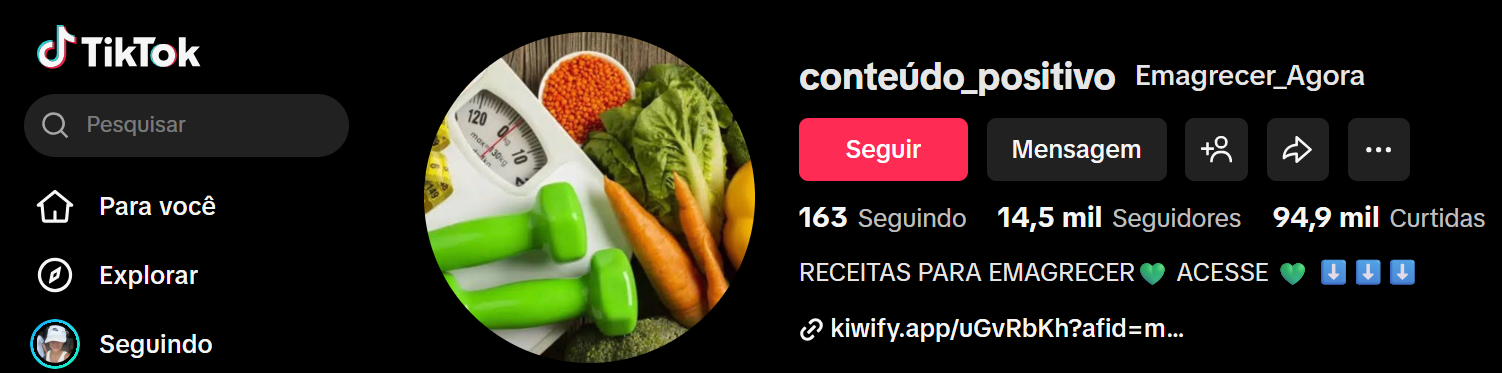 CONTA TIKTOK | 14K+ SEG | 94K+ CURT | NICHO SAÚDE & RECEITAS PARA EMAGRECER | OPORTUNIDADE