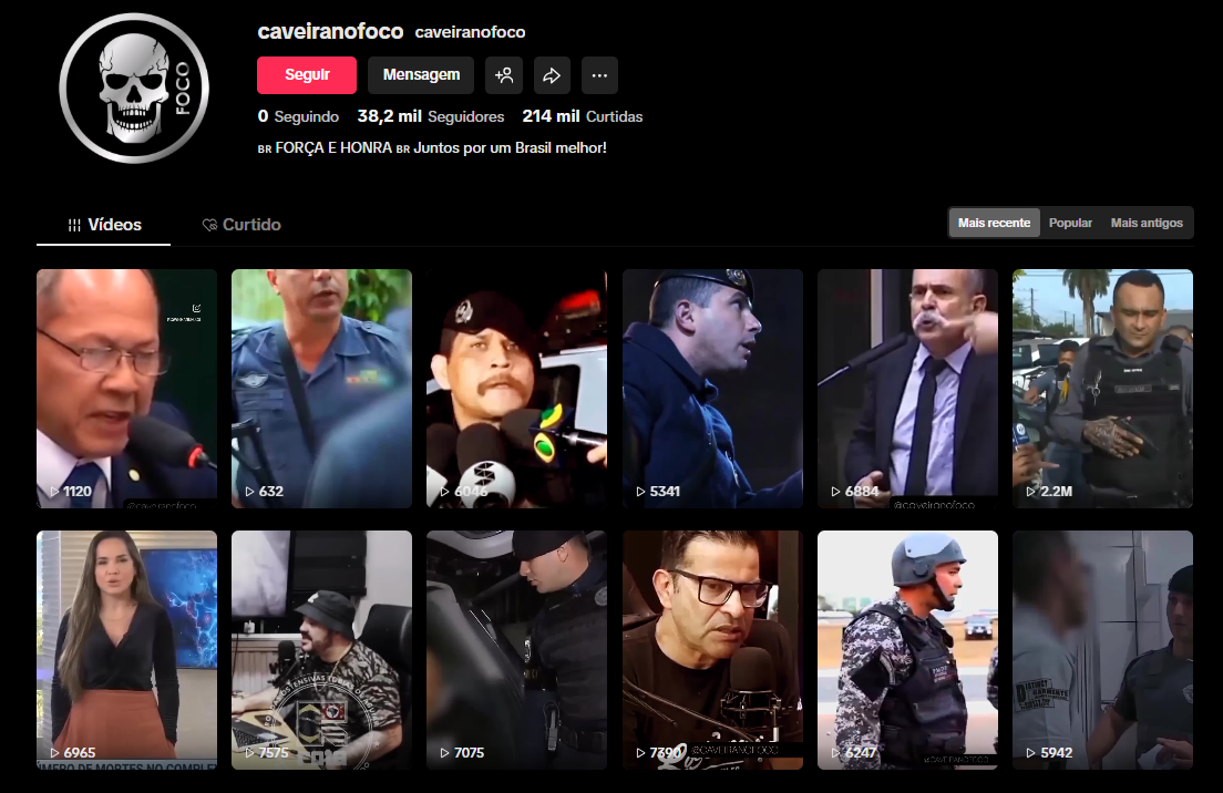 - Link da Conta: https://www.tiktok.com/@caveiranofoco