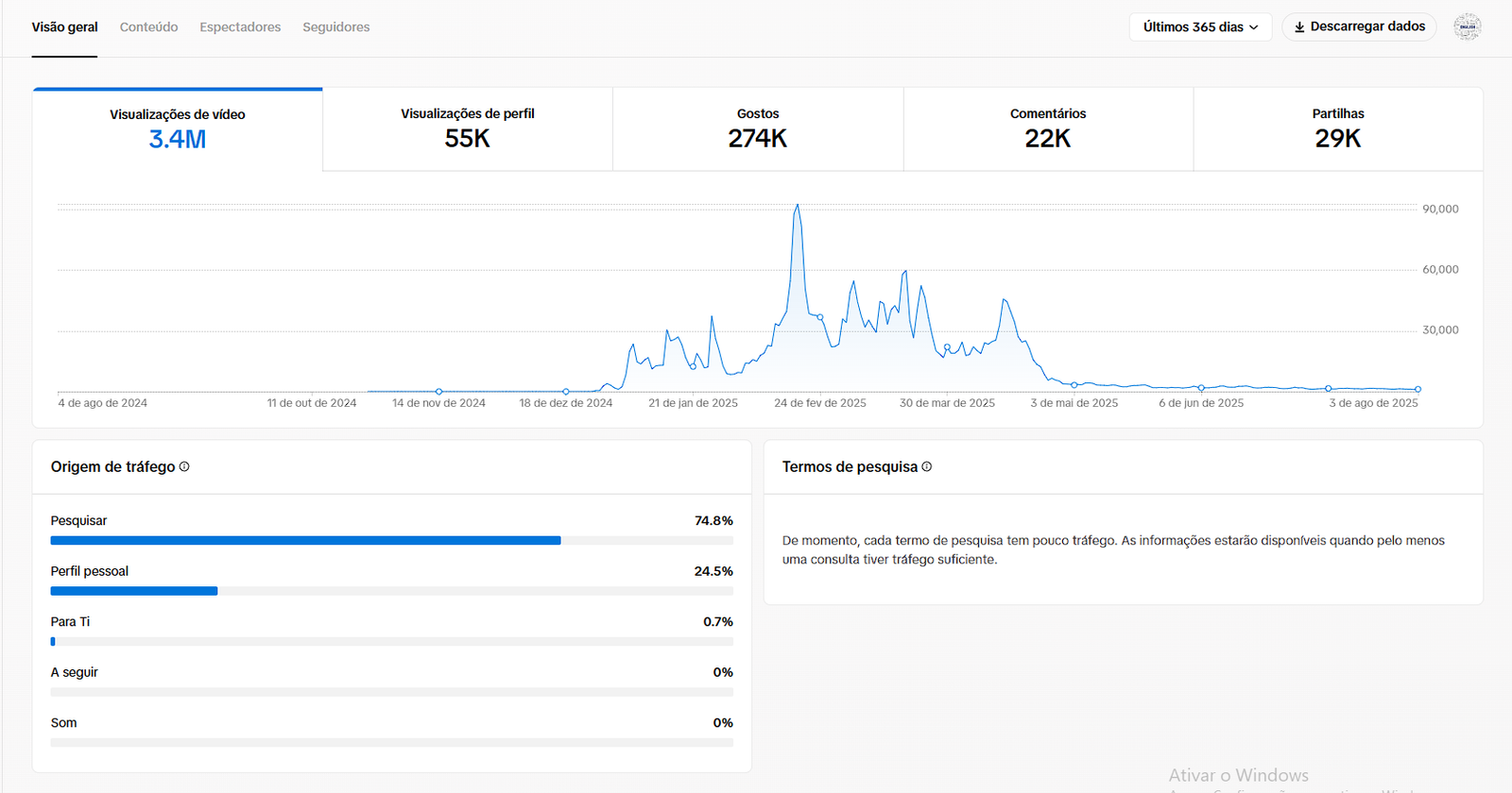 📄 Relatório com dados de visualizações, likes e engajamento disponível.