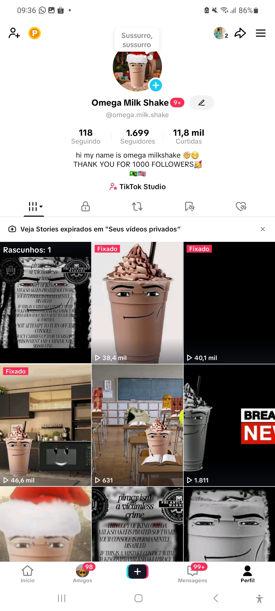 Oportunidade: perfil TikTok com 1699 mil seguidores, totalmente pronto para monetizar. Shop e monetização nunca ativados 🎉