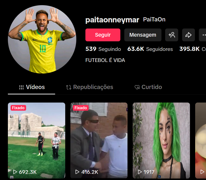 TIKTOK Pai tá onde Neymar – 63.6K Seguidores 395.8K Curtidas