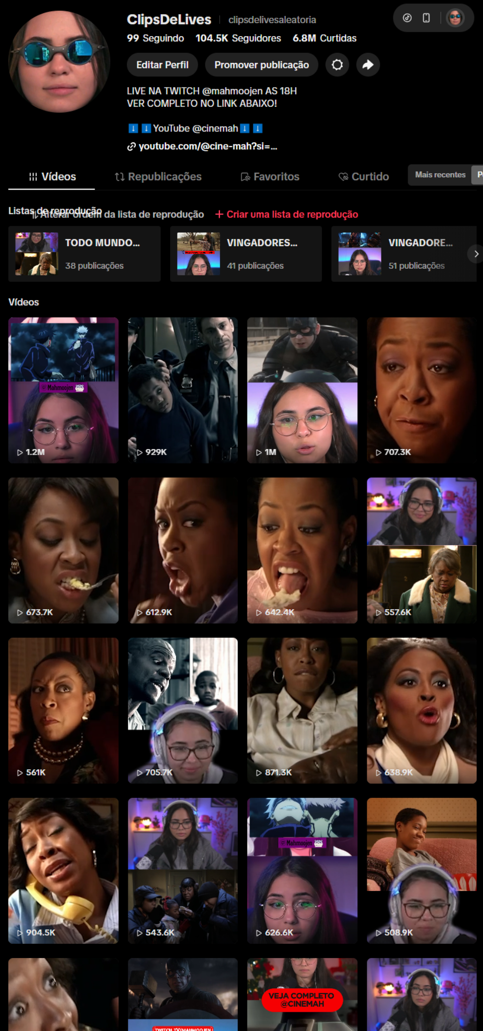 - Link da Conta: https://www.tiktok.com/@clipsdelivesaleatoria
