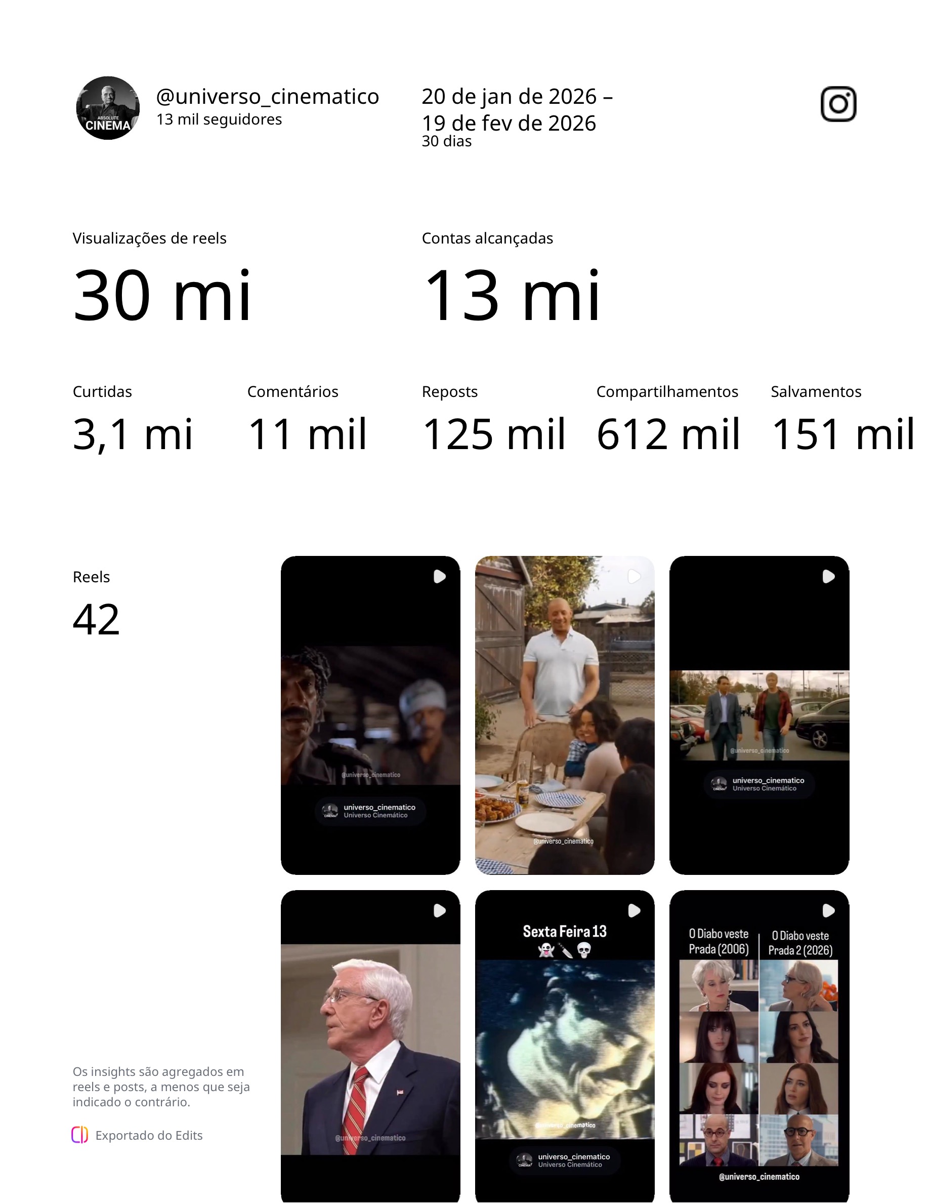 - Link da Conta: https://www.instagram.com/universo_cinematico?igsh=ZmZ4dGpzdnhzeHNj&utm_source=qr