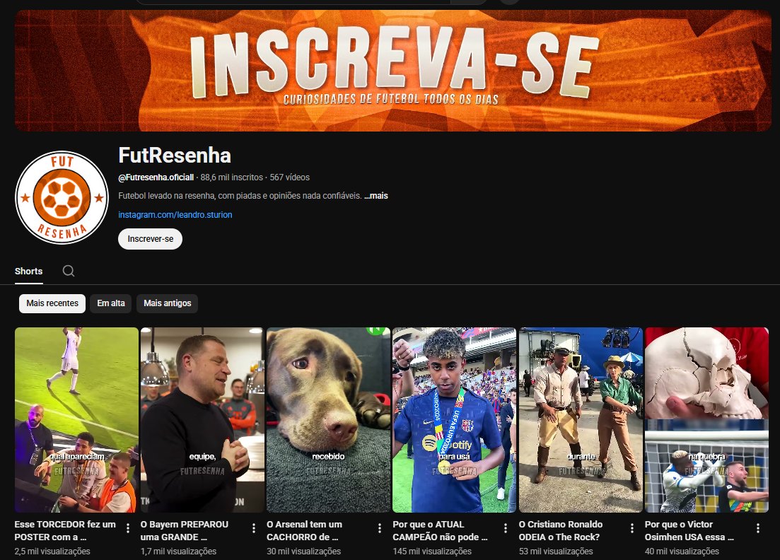 Vendo canal de shorts sobre futebol.. muito fácil de produzir e com alta rentabilidade.. o canal foi erguido 100% no orgânico (basta olhar os números dele)