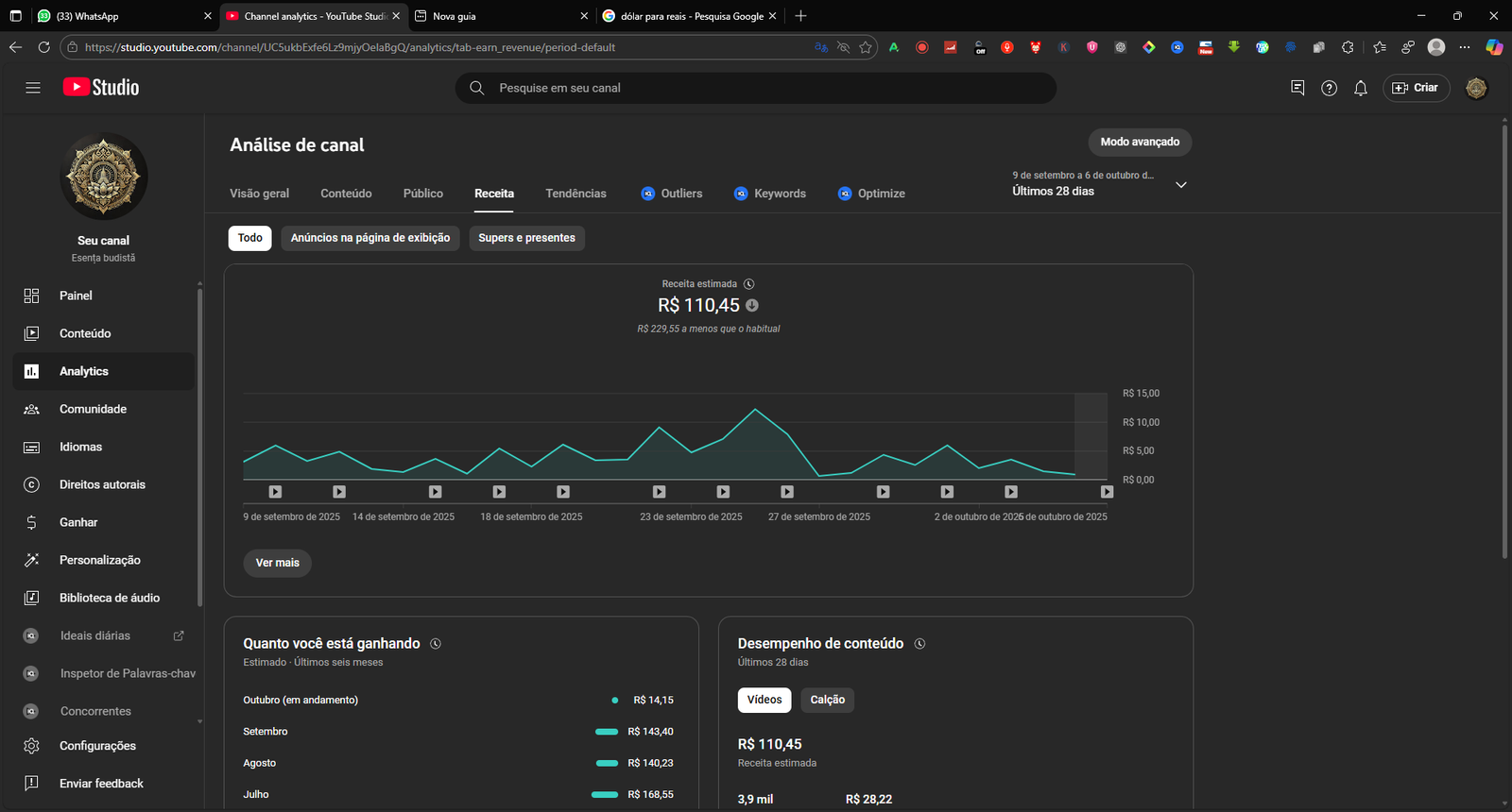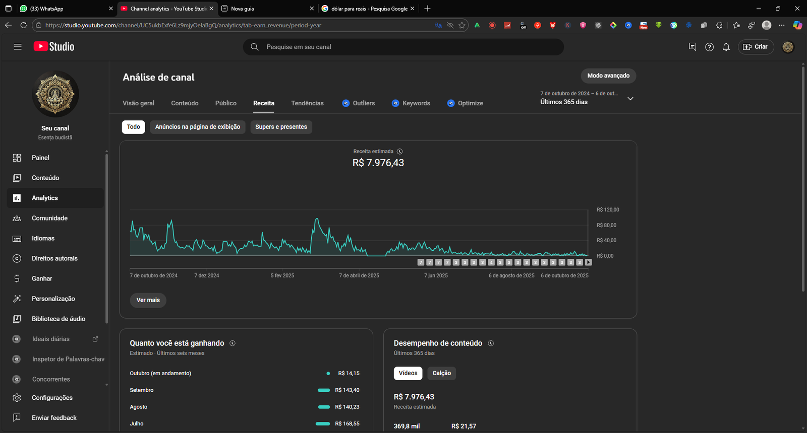 Monetização e patrocínios: MONETIZADO, GERANDO RECEITA