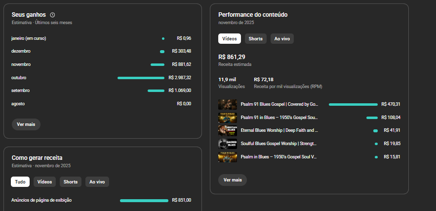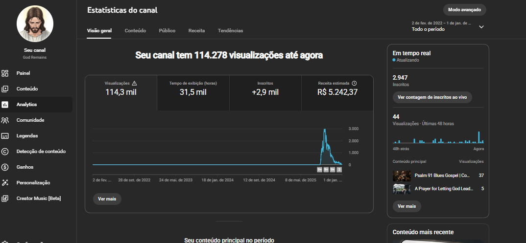 Canal com 4 meses de vida, público forte dos EUA, interessante pra quem curte fazer videos de histórias emocionantes tbm, vai ser uma boa a troca de nicho, continuar na musica tbm seria uma boa, por problemas de saúde não consegui manter a sequencia de postagens de videos mas o canal paga muito bem com poucas views.