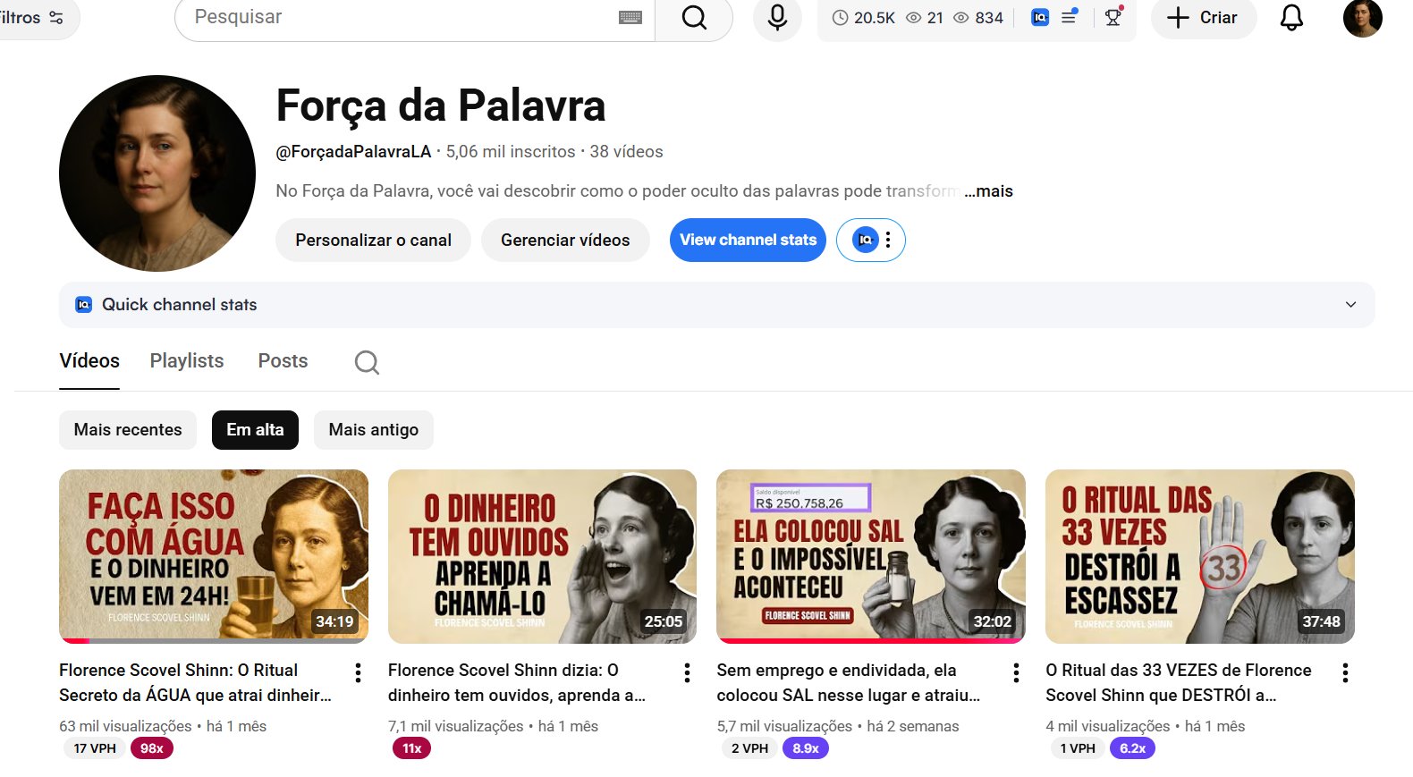Se você está procurando entrar no YouTube com um canal já pronto, monetizado, crescente e com potencial de explosão, o Força da Palavra é exatamente o que você quer.