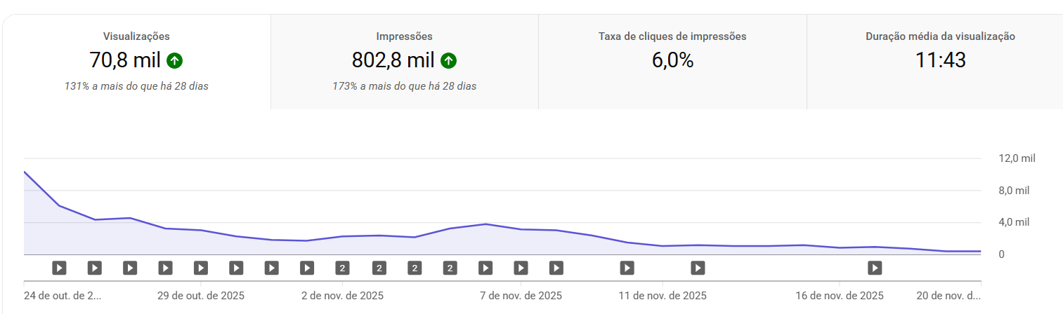 🔸 Gera entre quarenta mil e setenta mil views por mês — estável e crescente