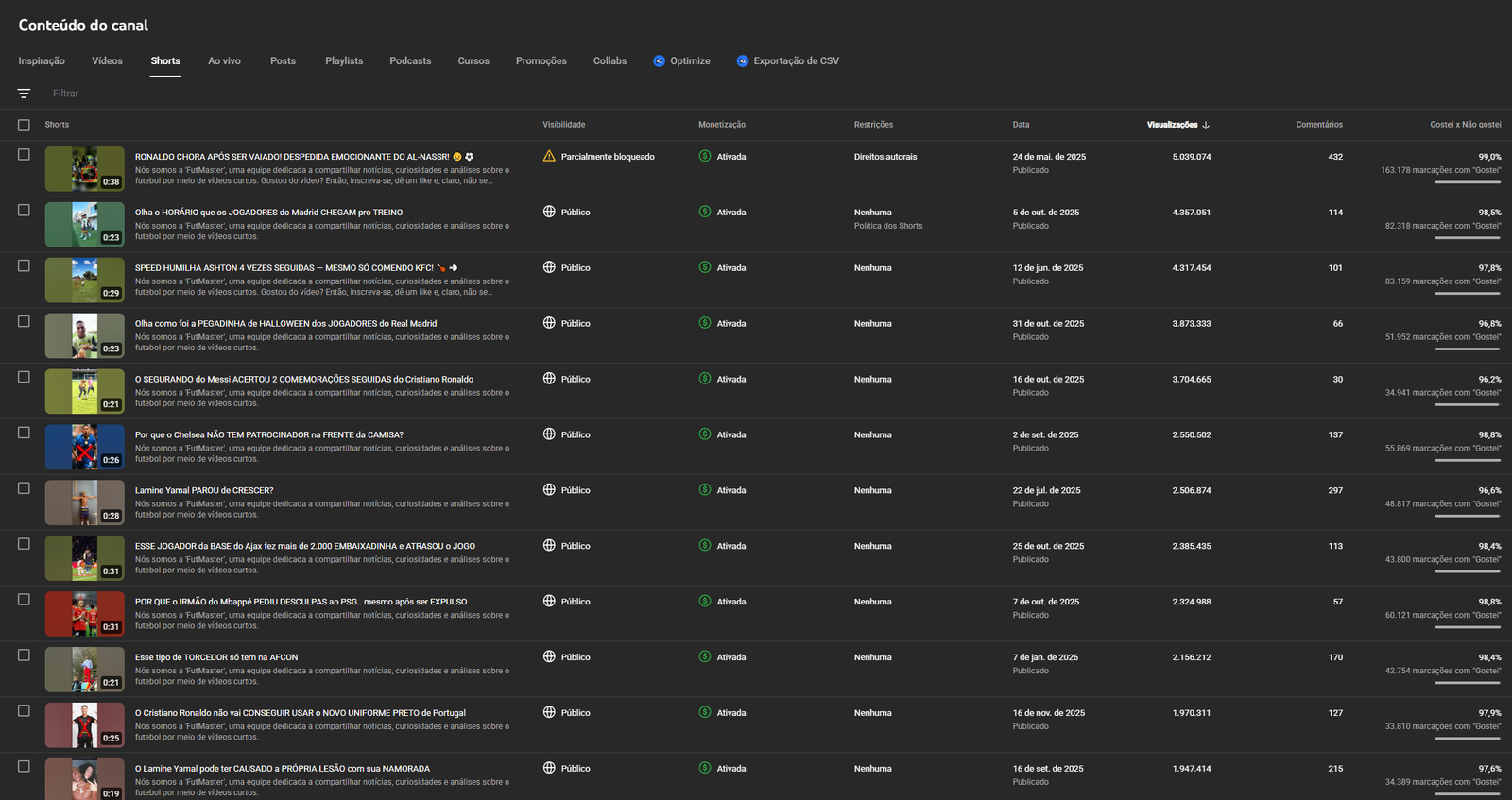 VENDO CANAL SHORTS FUTEBOL +160K INSCRITOS