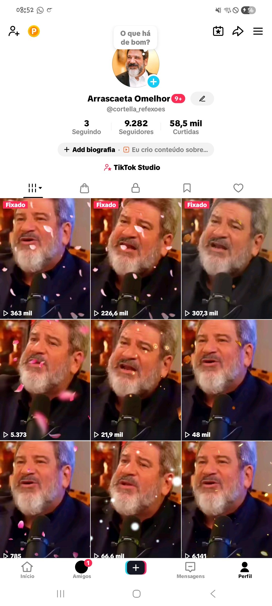 Conta de tiktok com 9k de seguidores com chope ativo e com bom engajamento nos vídeos.