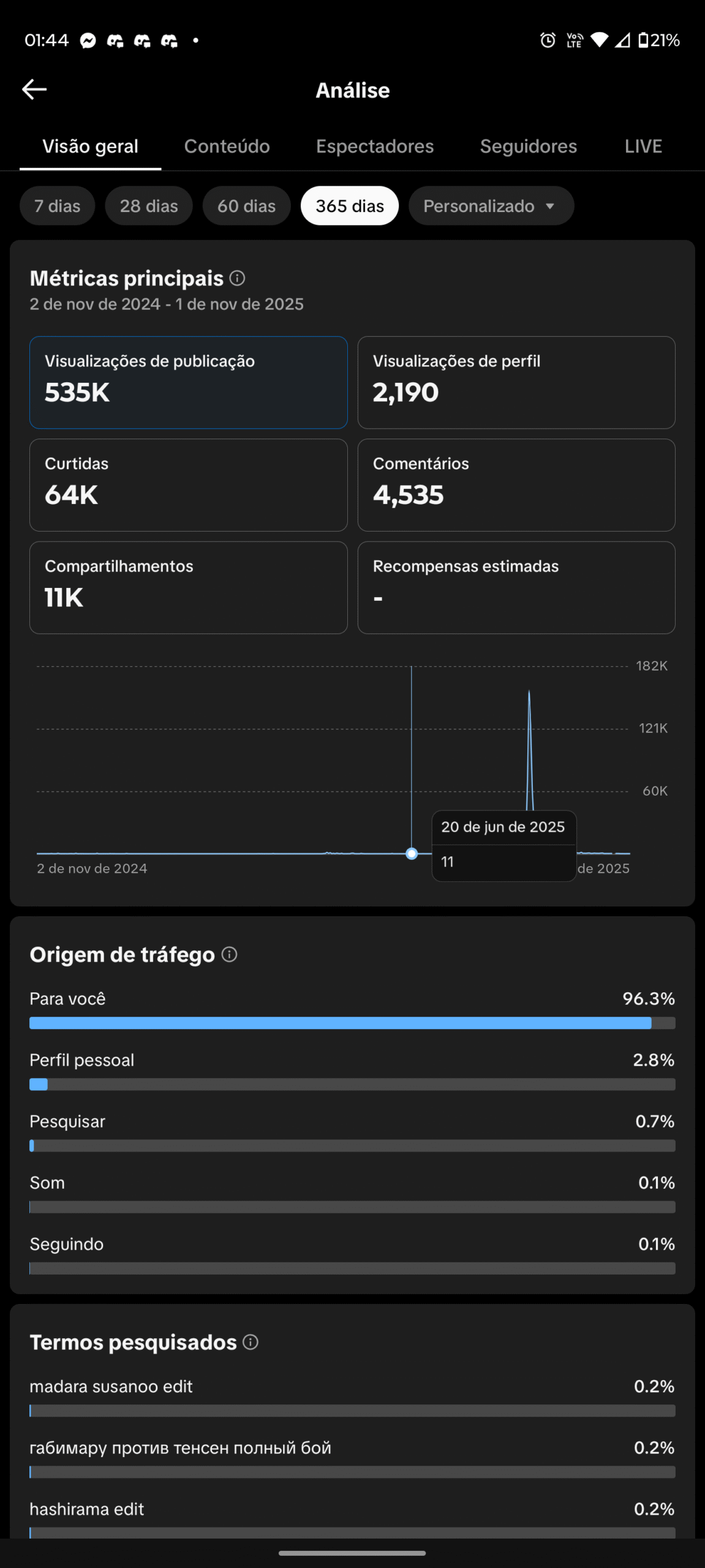 Vendo conta com 5k de seguidores com engajamento bom, 535k de visualizações feito nesses últimos 365 dias