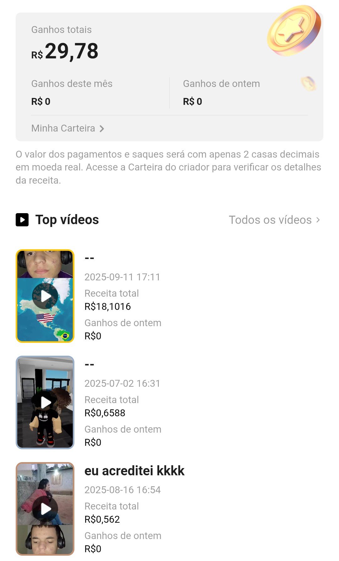 🎥 Vídeos com alcance alto e engajamento diário