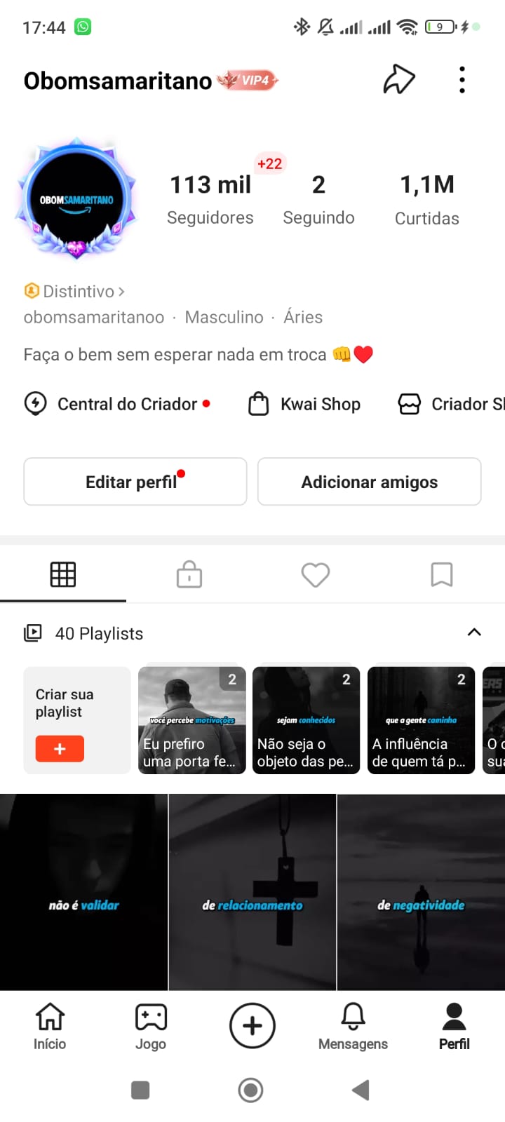 - Link da Conta: https://k.kwai.com/u/@obomsamaritanoo/AACZHPCn