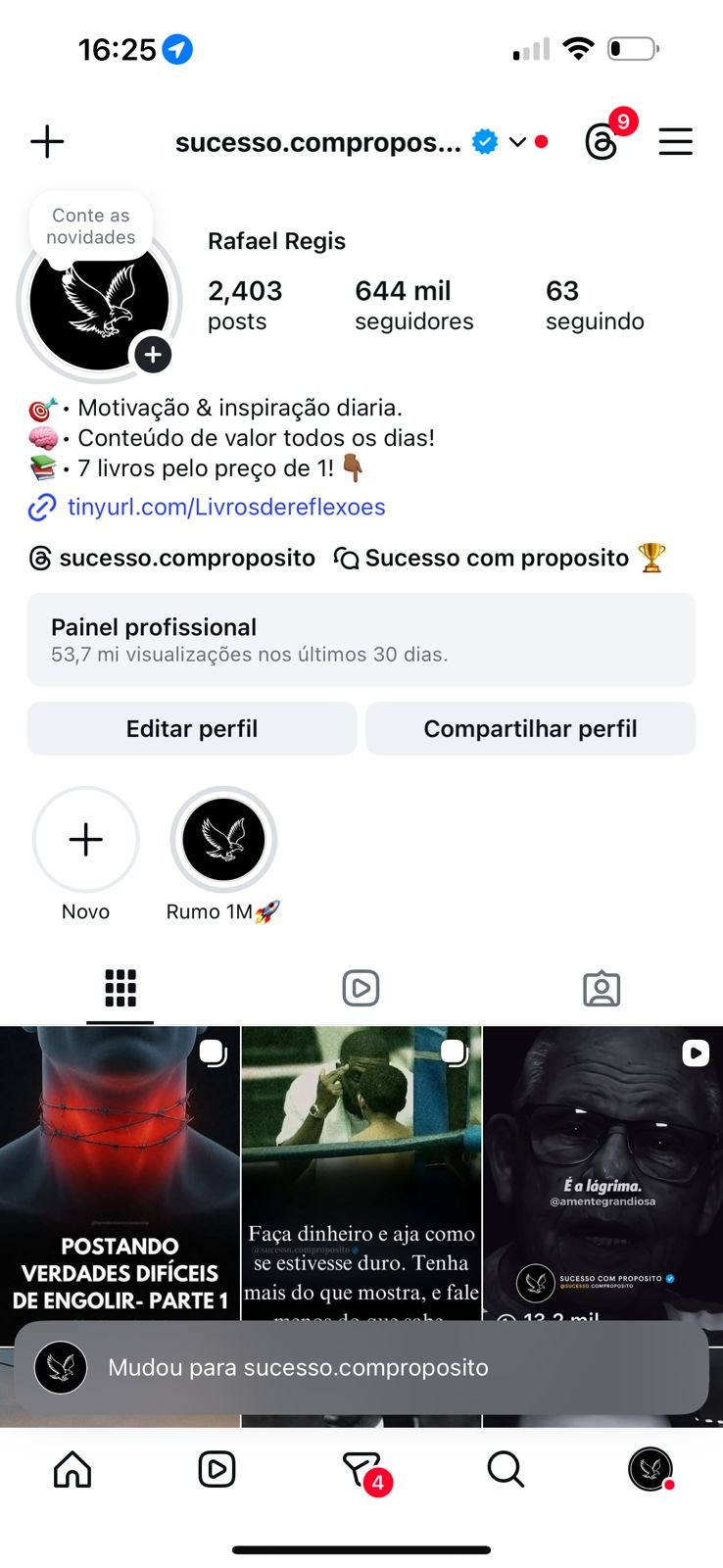 Vendo Perfil Do Instagram, Nicho De Motivação, Com Mais De 644 Mil Seguidores, Engajado e Viralizado, Com Todos Os Seguidores Reais, E 95% Seguidores Brasileiros
