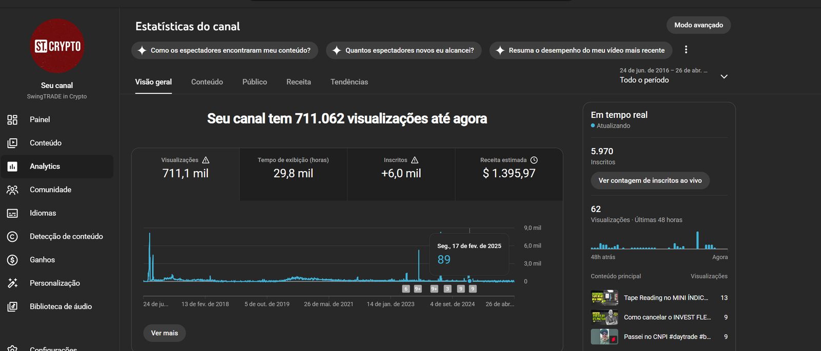 Youtube Finanças 5900 Inscritos reais, pronto para monetizar.