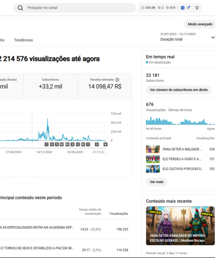 CANAL DE RECPTULAÇÃO DE MANHWA / MONETIZADO COM 33 MIL INSCRITOS