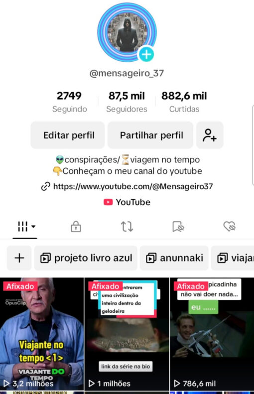 Canal tiktok barato demais com 87,5k de seguidores- de teorias de conspiração e curiosidades