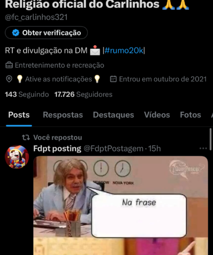 Conta Twitter com 17k de seguidores